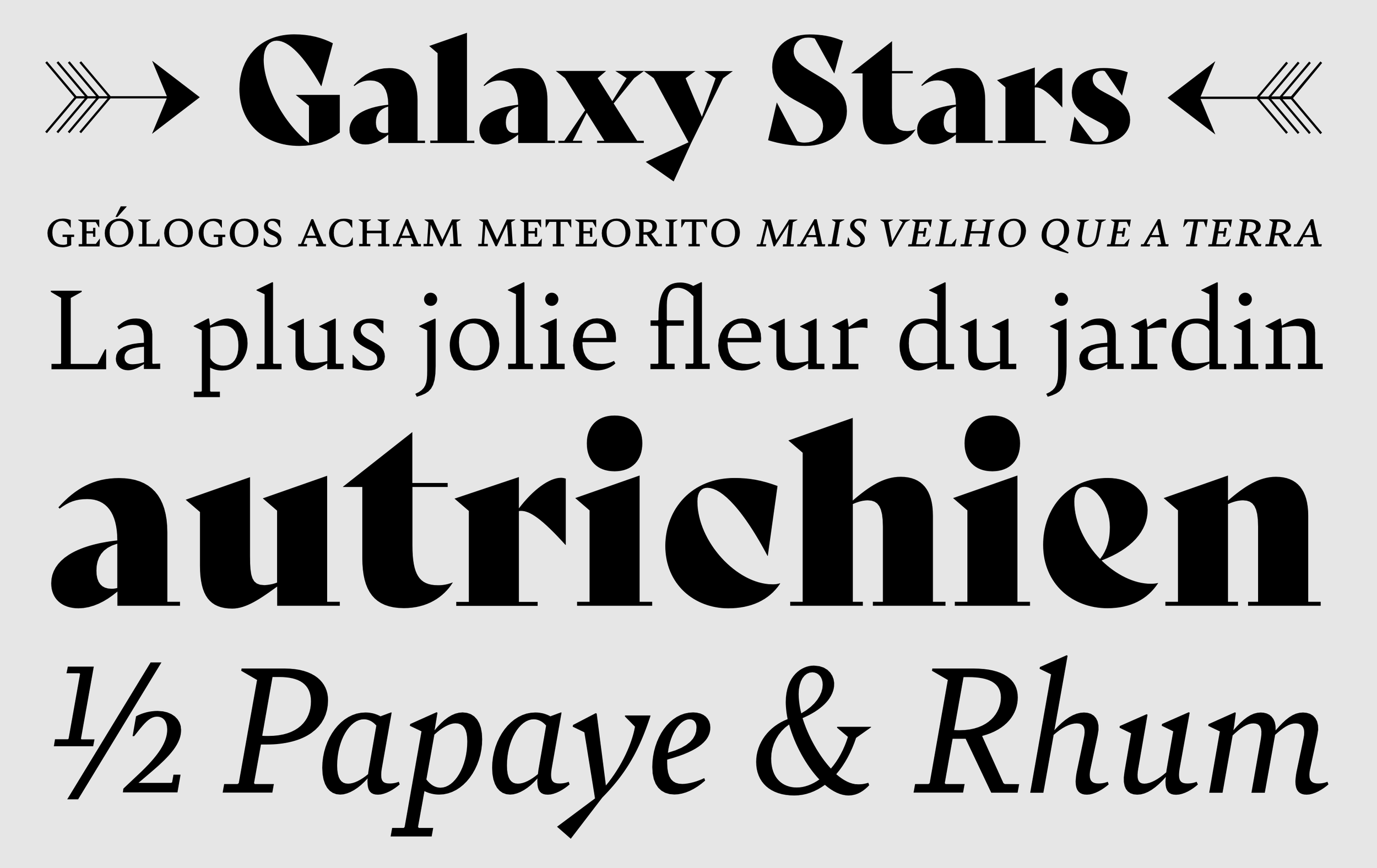 Bely is Roxane Gataud’s venturesome text font family paired with a fearless display in the French style. Built upon classical proportions to capitalize on reading familiarity, Bely’s four text weights combine comfortable reading with an admirable texture. Bely Display pushes the logic of the text weights to their extreme, resulting in adventurous forms for unforgettable packaging and headlines.