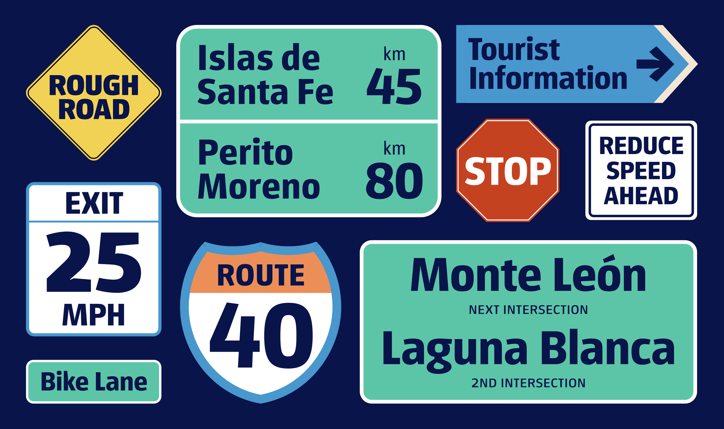 Contemporary typefaces can often fail if they have no verve or historical foundation. This sans family has both, combined with excellent research and modern panache. Instantly upgrade wayfinding, branding, and text choices with this contemporary solution.