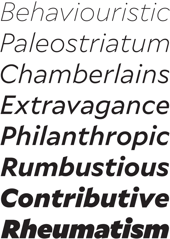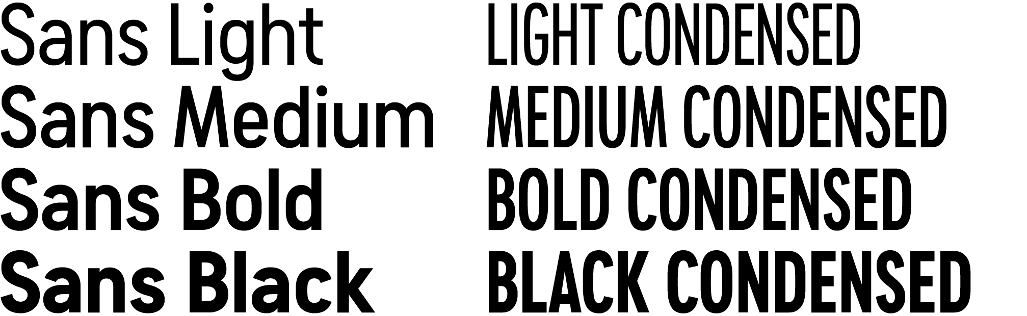 Mallory offers two optical sizes: Standard and MicroPlus. The Standard size distributes its 80 fonts over five widths (Regular, Compact, Narrow, Condensed, XCondensed), each with eight roman and italic pairs. MicroPlus has three widths (Regular, Compact, Narrow) with five weights of roman and italic pairs for 30 total fonts. Both the Normal and Compact can both serve as the “center” of the family, each with a full range of weights to build a palette. With 110 total styles, Mallory is both a cosmopolitan catalyst and transatlantic headliner.