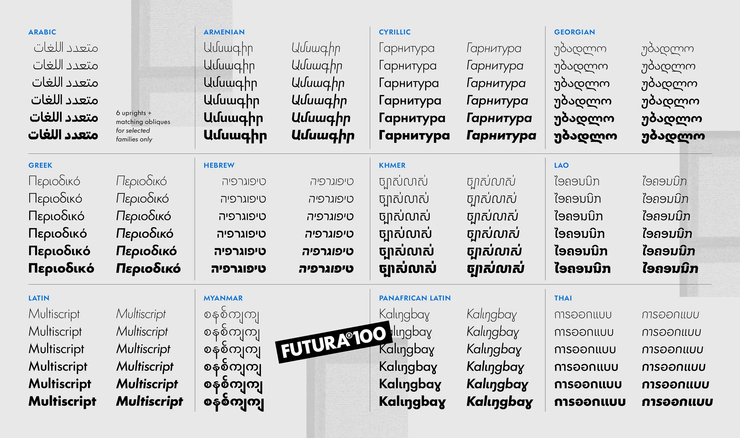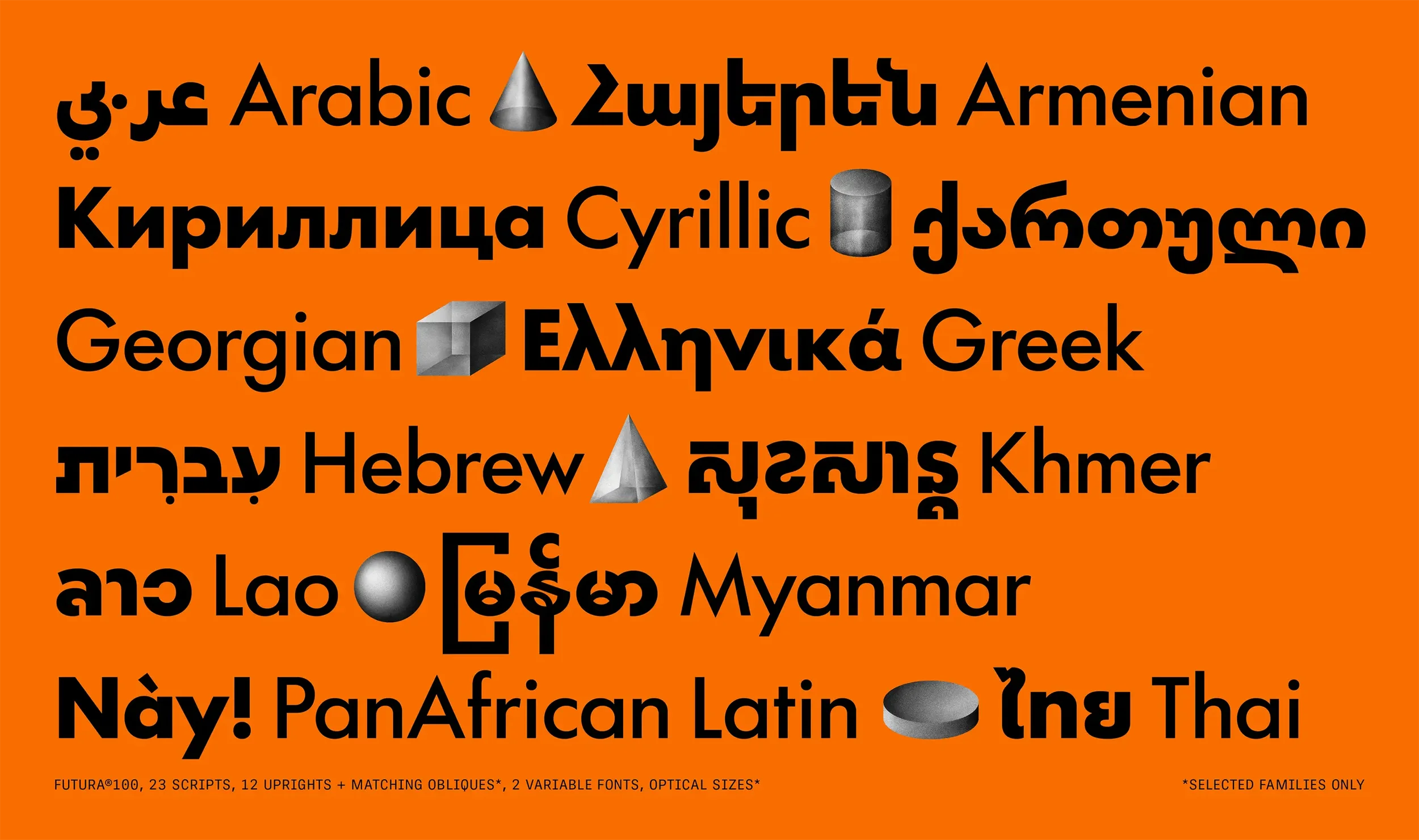 The classic geometric family — redesigned for modern tools, faithfulness to the original’s warmth, and for global multiscript use.