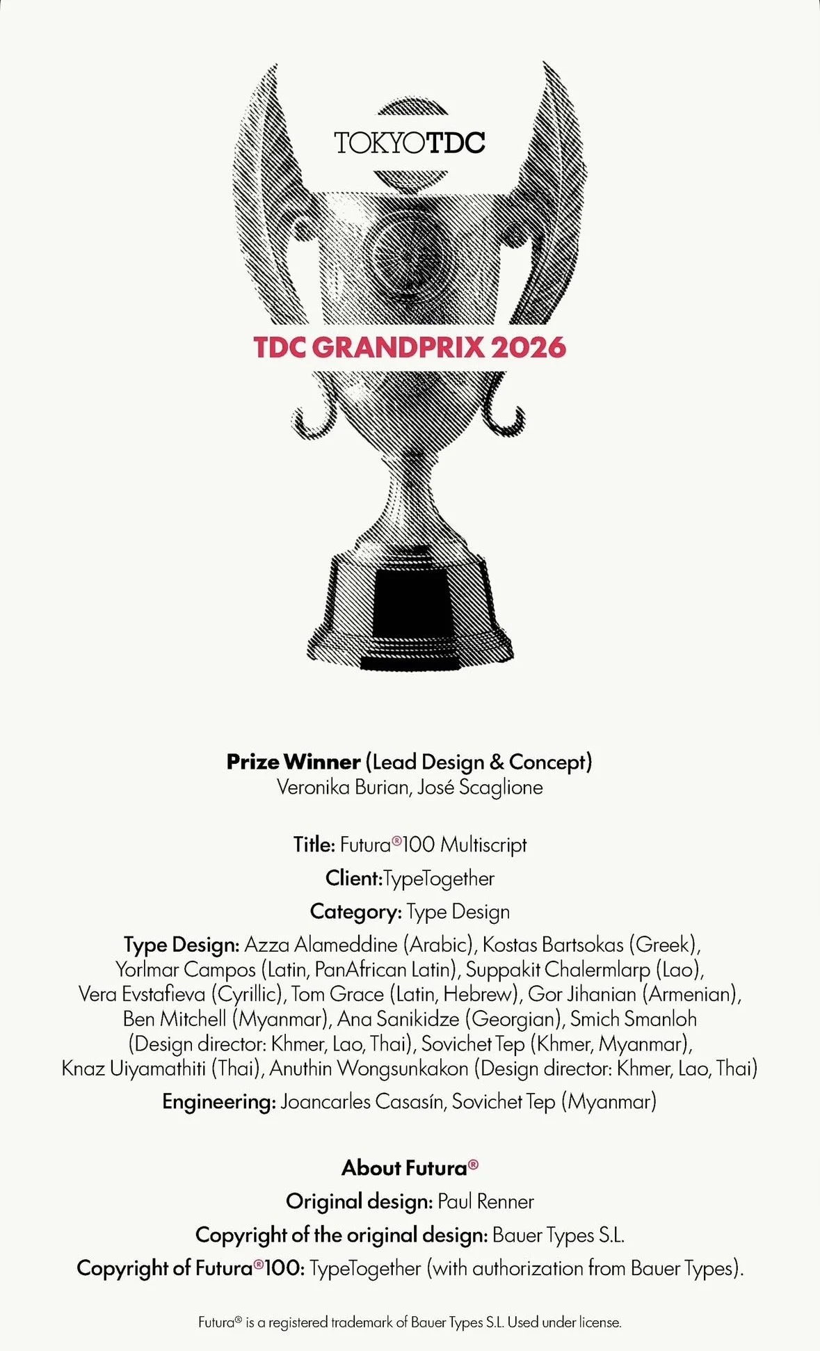 Awarded the 2026 Tokyo TDC Grand Prix, the top award available for outstanding work